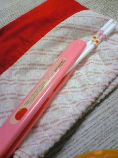 お昼ごはんを入れてる巾着と箸。